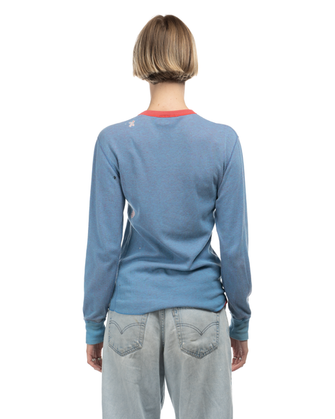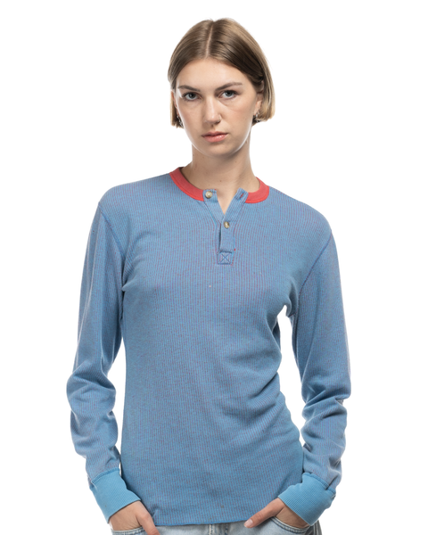 1970s Pinstriped Thermal Henley - Small