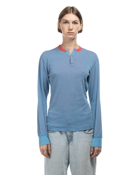 1970s Pinstriped Thermal Henley - Small